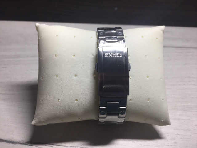 Спеціальні матеріали, з яких виготовлений годинник, є чудовим захистом від вологи. Задня кришка циферблата з неіржавкої сталі надійно захищає механізм, а нанесена на неї фірмове гравіювання є відмітною рисою ОРІГІНАЛЬНИХ годинників SKMEI.Клас водозахисту 3 АТМ